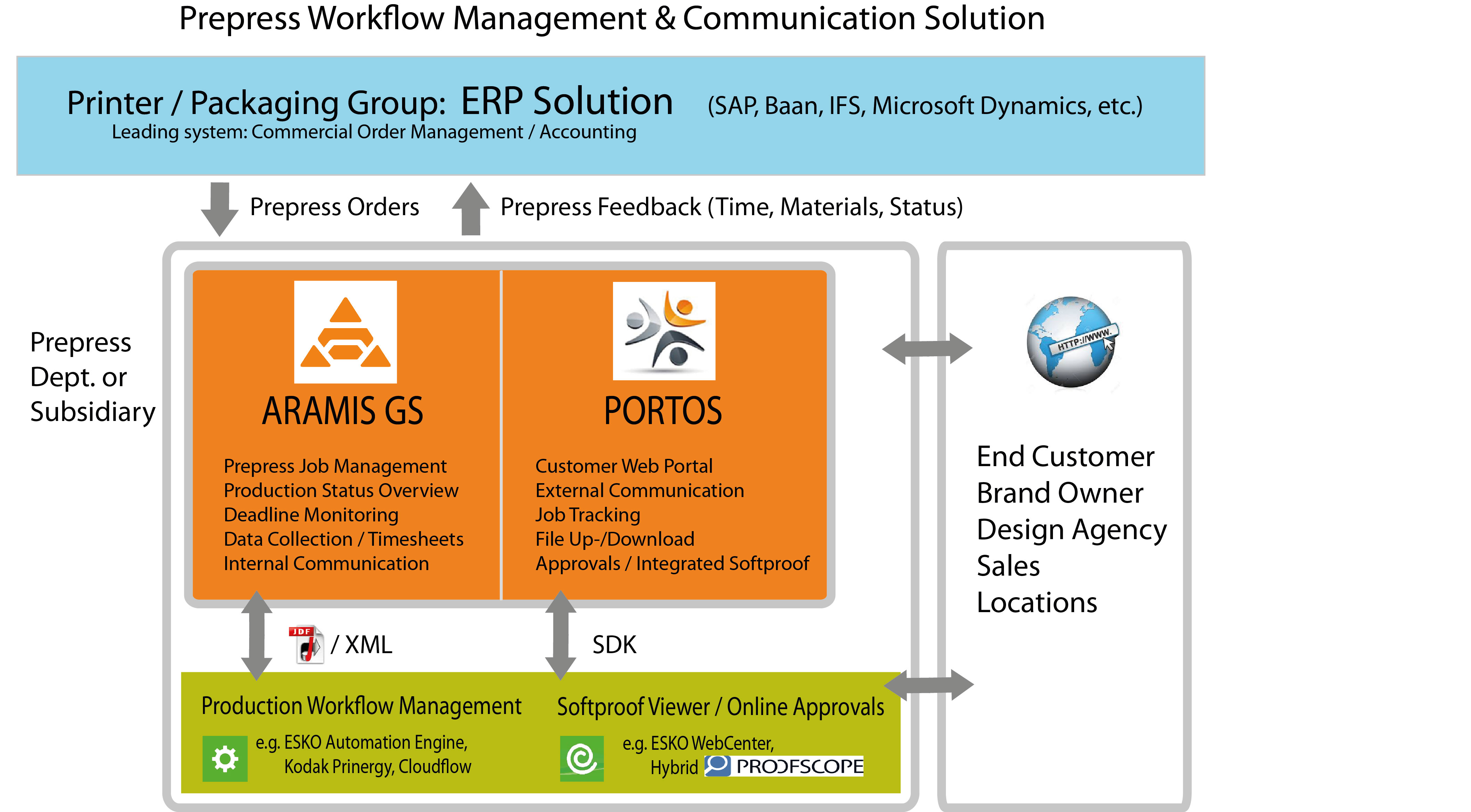 Die Kombination aus Aramis GS und Portos ist hervorragend dafür geeignet, die Prepress-Abteilungen optimal zu unterstützen. Unsere Lösung lässt sich an die bestehenden Workflows anpassen und über geeignete Schnittstellen perfekt in die Software-Infrastruktur der Druckerei integrieren.